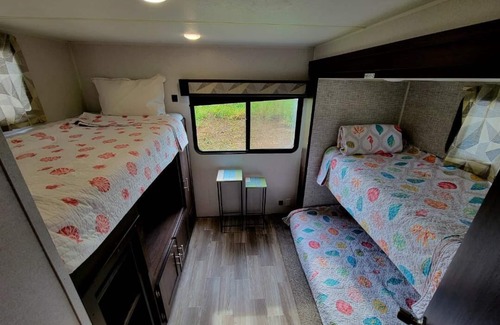 RV está ubicado en un entorno tropical con muchas comodidades como la piscina de estilo muy singular con Tiki Bar para sentarse y mirar televisión y relajarse después de un duro día de trabajo o la playa. Hay muchos lugares para sentarse y descansar en el patio y tomar el sol o disfrutar de un libro. La propiedad está muy cerca de todas las tiendas locales, la playa, el aeropuerto, la estación de tren y el centro de 3 ciudades locales. La propiedad también está cerca de grandes centros comerciales locales y centros de venta.