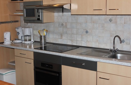 El bungalow se ha ampliado a 98 m² y se renovó en 2018 para que el salón sea más amplio y tenga mucha luz. La sala tiene una sala de estar separada para ver la televisión y desde ese ángulo puede mirar la cocina abierta con una placa de inducción, un horno de microondas con seis minutos de tecnología, un nuevo lavaplatos y una nevera con un congelador de 50 litros. Hay una cafetera normal y una máquina Senseo y una tostadora.