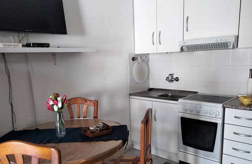 La planta superior tipo estudio y se accede por las escaleras que hay en la terraza y llegan a un solarium con tumbonas para disfrutar del sol. El estudio cuenta con electrodomésticos y menaje, dos camas individual de 90 , y un baño con ducha.