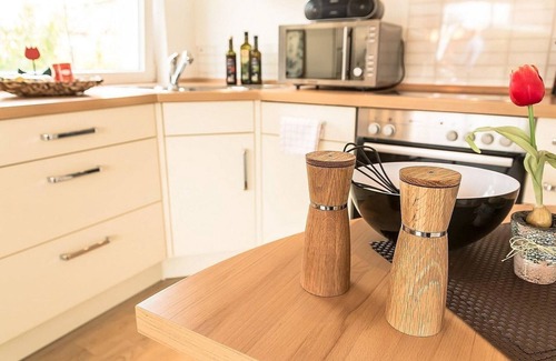 Recién amueblado en 2019 y ubicado en las inmediaciones de la playa principal, justo detrás del dique, no lejos del muelle, relájese en nuestro "oasis de bienestar", la casa de playa, en Königsberger Allee 8.