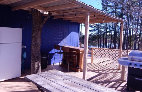 Relájate en el porche o patio y disfruta de servicios como los muebles de exterior, o tómate algo en el brasero de jardín de esta cabaña.Para cambiar un poco, entra y disfruta del wifi gratis, de la televisión y del reproductor de DVD.