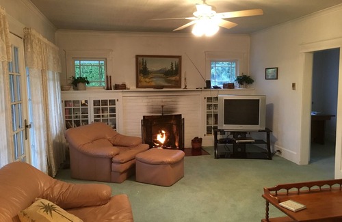 Esta casa de campo se encuentra en un vivero especializado en palmeras resistentes y plantas inusuales. Tiene una chimenea con un registro de gas que está disponible en los meses más fríos. Wi Fi está disponible en el porche cubierto y la cubierta. Hay un columpio en el porche. El dormitorio principal tiene una cuna disponible. Hay una cama King en el dormitorio principal. Un dormitorio tiene una cama queen. El tercer dormitorio de arriba tiene 2 camas individuales. En la planta baja hay una cama de día para dormir 1. Fuera de la cocina hay un rincón que está orientado al sur, por lo que es brillante y soleado allí. Esta es una casa de campo de 1929 con algunas remodelaciones y, como tal, tiene muebles de época y pomos de las puertas del baño que no se bloquean. Estamos ubicados a 2 millas al sur del Jardín de Oregon y aproximadamente a 25 minutos del parque estatal Silver Falls. Un baño tiene una bañera y el otro una ducha. Las tarifas comienzan en $ 135. 00 para 2 personas por noche, cada persona adicional es de $ 15. 00 por noche con una ocupación máxima de 8 personas.