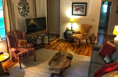 El dormitorio principal contiene una cama queen nueva, un conjunto de muebles antiguos y un nuevo televisor con dispositivo Roku. El segundo dormitorio tiene una cama de tamaño completo, y hay una habitación diseñada para que sea amigable para los niños con una litera que es gemela. Todas tienen camas cómodas y están amuebladas con buen gusto. El baño recientemente remodelado tiene una combinación de ducha / bañera y un lavamanos. Se proporciona conexión WiFi gratuita para mantenerte conectado mientras estás lejos. La sala de estar tiene un televisor inteligente de 48 "con acceso directo a DirectTV. También puede transmitir películas utilizando sus cuentas en línea. Un extremo de la sala de estar tiene una mesa de comedor que se expande para acomodar a 6-8 personas para las comidas familiares y hay un escritorio para el trabajo si es necesario. La cocina está totalmente equipada con todos los electrodomésticos, platos y utensilios de cocina. Hay una pequeña mesa de comedor en la cocina con capacidad para 2 a 4. Afuera hay espacio para que los niños jueguen en el gran patio trasero. Si está visitando a su familia, asistiendo a un evento local, o simplemente quiere explorar el sur de Iowa, no busque más allá de Chariton Homeplace.