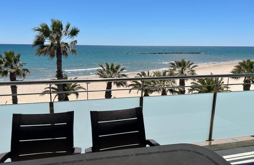 Duplex 140 m2, primera línea de mar, tranquilo, luminoso, espacioso con una gran terraza de 14 mts, magníficas vistas al mar y playas de arena. Tiendas, restaurantes a 100 mts Estación a 500 mts Trenes al centro de Barcelona cada 30 min. Ideal para el descanso y para el turismo cultural. Club de tenis lateral. Playas limpias y poco profundas para niños.
