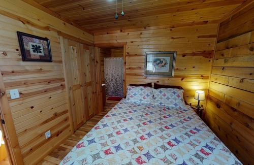 Relájate en la bañera de hidromasaje o tómate algo en el porche o patio de esta cabaña. Cuando entres, conéctate al wifi gratis o relájate frente a la televisión por cable o satélite (dispone de videoteca). También hay un reproductor de DVD.