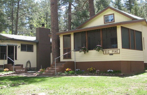 La cabina BIG PINE es una espaciosa cabina de dos pisos con capacidad para 8 personas cómodamente. El dormitorio del piso principal tiene una cama de tamaño completo. Arriba, en el segundo piso, tres habitaciones están conectadas en serie (estilo furgón) separadas por una puerta o puerta tipo salón. Las habitaciones tienen un total de cuatro camas individuales y una cama completa. ¡Habla sobre la gran diversión! ¡Esta es una excelente cabina de escapada para pasar la noche divertidos, como pequeñas Tropas Scout, grupos de jóvenes o simplemente GRANDES familias!