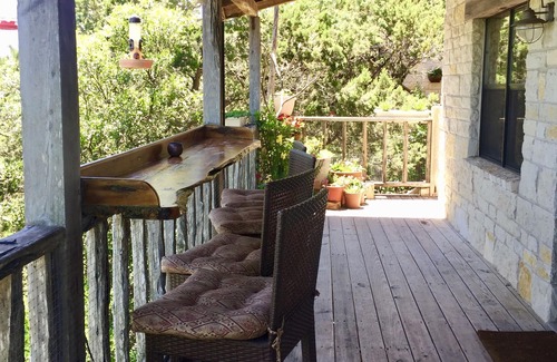 Para aquellos que buscan lo último en espectaculares vistas del valle de Frio y una tranquilidad excepcional, La Casita es el lugar perfecto para escapar de lo común. Esta cabaña de roca blanca, construida por expertos, es una casa de huéspedes codiciada para una espectacular finca en lo alto de las nubes, pero a solo 5 minutos del río Frio. Privado y con mucho espacio para estacionar en el camino circular, camina por un sendero elevado e inmediatamente disfruta de la belleza de la cordillera y el río Frio debajo de su cubierta privada cubierta. Hay una parrilla de barbacoa y un quemador exterior para preparar comidas al aire libre, o simplemente sentarse en los cómodos taburetes del bar con una copa de vino y admirar las vistas.