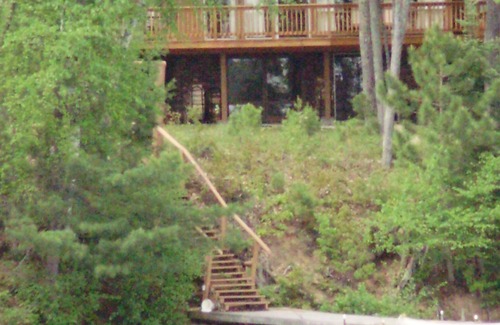 Esta cabaña de tres dormitorios, dos baños, completamente amueblada, con el ambiente de Northwoods en todo, tiene un nivel inferior, una cubierta envolvente y magníficas vistas del lago Buckatabon. Tranquilo, sin vecinos cercanos. Impresionante vista del lago desde fogata con leña amueblada Garaje independiente. Se proporcionan parrilla de gas Weber y parrilla de carbón. El nivel inferior tiene fregadero para limpiar pescado. El lago Buckatabon es un lago tranquilo y familiar perfecto para pasear en bote, andar en canoa o en kayak. Gran lago de pescadores. A 20 minutos de muchos restaurantes. El Puente Quemado está a solo 10 minutos. Escucha los bribones, mira los ciervos y las águilas. Lugar perfecto para una escapada familiar. Dos tercios de nuestros inquilinos son familias de retorno.