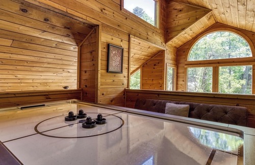 Estamos totalmente equipados con Wi-Fi gratuito, nuevos televisores de pantalla plana en cada habitación, sala de juegos con mesa de air hockey y futón, cocina totalmente equipada, bañera de hidromasaje en el baño principal, lavadora / secadora, hermosas vistas a la montaña y chimenea (leña) . Esta cabaña está equipada con toallas, paños y ropa de cama. También ofrecemos servicio telefónico gratuito de larga distancia. Tiene capacidad para 2-6 personas, pero podría dormir una persona adicional en un sofá seccional.