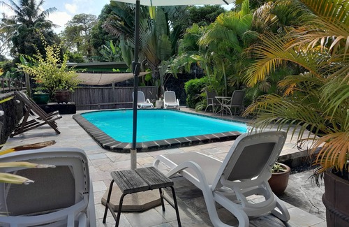 Este acogedor estudio situado en el primer piso del pequeño complejo de 4 unidades que comparten una piscina común, y está a sólo 100 mts de la hermosa playa de Pointe d'Esny. Está rodeado de un jardín tropical de árboles frutales y flores locales con una gran cantidad de aves locales.
