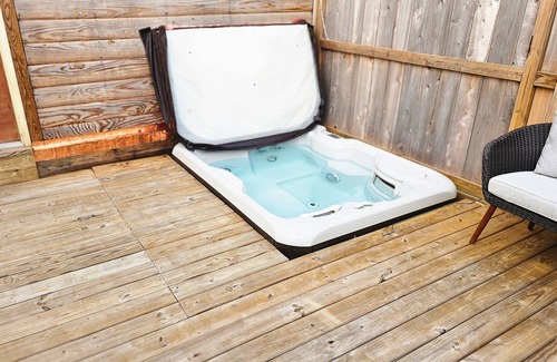 Dry Ridge is waiting for you at this cozy 1-bedroom cabin. The hot tub is surrounded by a deck with privacy fencing.