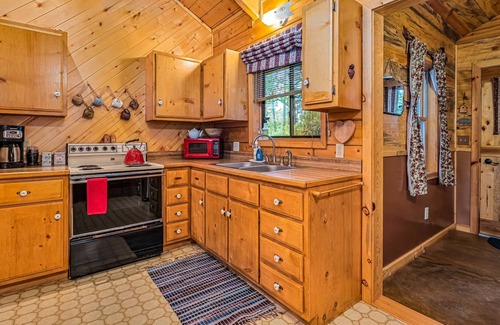 Belleza y limpieza - Encuentra todo lo necesario en la cocina completa para preparar sus comidas favoritas. Cenar en la mesa de la cocina de pino o en el porche con sombra. El cuarto de baño ha sido recientemente remodelado, nueva adición entrada y el propietario ha renovado el acabado la mayor parte de la madera en toda la cabina y ha añadido muchos toques únicos hechos a mano. Para su comodidad encontrará una lavadora y una secadora. Se proporcionan ropa de cama. Mira el nuevo televisor de pantalla plana, disfrutar de películas o escuchar música con el nuevo sistema de sonido envolvente digital de la cabina.