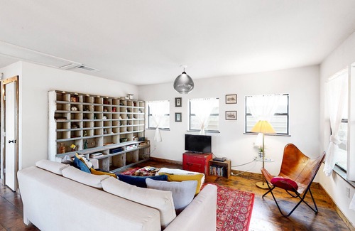 El baño cuenta con una amplia ducha independiente, que se encuentra junto a un acogedor dormitorio con una cama doble. Dos viajeros más pueden disfrutar durmiendo en el sofá cama de la sala. Esta casa puede dormir cómodamente cuatro, y si necesita más espacio, considere alquilar la casa adyacente, que tiene capacidad para seis más.