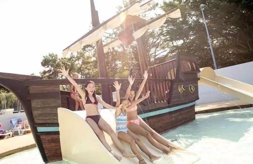 En el lugar, disfrutará del complejo acuático de 1000 m² cubierto y climatizado abierto desde abril con toboganes, toboganes, río contra la corriente, jacuzzi y barco pirata ... y otras 2 piscinas climatizadas al aire libre (desde 15 / 06 al 15/09) con toboganes, spa, piscina infantil y hongos de agua.