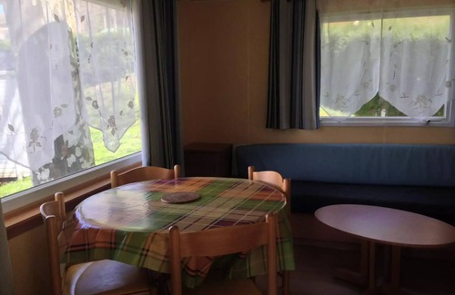 Accommodation: Mobil home I R M with 1 double bedroom and 1 with 2 single beds, convertible living room, bathroom (shower, sink) WC, covered terrace shaded, wifi Free, pre equipped TV antenna, refrigerator, microwave, gas hob, coffee maker, dishes. Garden furniture.