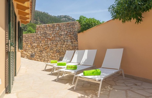 Los exteriores de esta casa son ideales para disfrutar del clima mediterráneo. En la terraza encontrarán una piscina de 4x1'75 con una profundidad variable entre 1.45m y 1.65m. Junto a ella, hay tumbonas donde relajarse tomando el sol, además de un porche con una mesa donde disfrutar de inolvidables comidas junto a sus acompañantes mientras admiran las vistas a la imponente Sierra de Tramuntana. La propiedad está vallada y hay vecinos cerca. El interior de la casa de dos plantas ha sido reformado recientemente. Está decorado con mucho gusto, combinando elementos rústicos con la equipación más moderna, y pensado para que descansen como se merecen. El precioso salón tiene AC y TV-sat y cuenta, además, con una zona de comedor con vistas a la terraza. La cocina, de inducción, tiene todo lo necesario para que cocinen con total comodidad. En la casa hay también lavadora, plancha y tabla de planchar. A la hora de dormir disponen de 3 dormitorios dobles, todos con AC y baño en suite con ducha. Uno de ellos se encuentra en la planta inferior, mientras que a los otros dos se accede a través de una escalera. Si viajan con su bebé, podemos proporcionarles una cuna y una trona. Esta casa está en una zona muy tranquila de Andratx, cerca de muchos senderos y rutas para practicar ciclismo. Pueden explorar la Sierra de Tramuntana, sus pueblos encantadores como Banyalbufar y Sóller, así como subir a la montaña de La Trapa o al Puig de So Na Vidala. En el pueblo de Andratx encuentra todos los servicios para una estancia independiente, un supermercado, bares, tiendas y una gasolinera. A pocos minutos en coche llega a Puerto de Andratx, un pueblo de costa con un aire lujoso. La próxima playa de arena está a 14km, en Peguera, y también puede visitar las playas de Sant Elm, Santa Ponsa y Cala Vinyes. El campo de golf de Andratx está a solo 6km de la casa. Para posibles gastos adicionales, consultar con el anunciante. No aceptamos mascotas. La celebración de eventos no está permitida. Hay aparcamiento exterior para 2 coches. Distancias Playa: 14 km - Palmira Aeropuerto: 41.2 km - Palma de Mallorca Campo de golf: 6 km - Golf d'Andratx Pueblo: 1.5 km - Andratx Estación de tren: 30.5 km - Estació Intermodal Parada de bus: 1.3 km - Son Sampol Ferry: 44.4 km - Valldemossa Hospital: 33.3 km - Hospital Universitari Son Espases Licencia turística: ETV/8958Registro unico turístico: ESFCTU00000703200041807600000000000000000000ETV/89586En las Islas Baleares existe una tasa turística, llamada Ecotasa, que tiene que ser abonada por parte del huésped. El importe varía entre 0.55€ / por noche y persona en la temporada baja y 2.2€ / por noche y persona en la temporada alta. A partir del noveno día, se reduce a la mitad. Personas menores de 16 años excluidas.