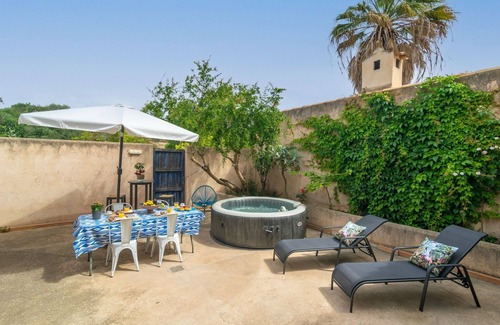 Los exteriores de la propiedad son ideales para disfrutar del clima mediterráneo. En el patio encontrarán varias zonas donde poder comer o tomar algo junto a sus acompañantes, tumbonas en las que tomar sol e incluso un jacuzzi donde refrescarse mientras se relajan. Además, hay un balcón y una terraza superior desde donde se pueden admirar unas fantásticas vistas de las montañas cercanas. Como se encuentra dentro del pueblo, la casa tiene vecinos directos. El interior de la vivienda de tres plantas está diseñado para que descansen como se merecen. En la planta baja encontramos u salón comedor, equipado con AC y Smart TV, que se abre directamente al patio mediante unas grandes cristaleras, dándoles así la oportunidad de ampliar o reducir el espacio según deseen. La cocina es independiente y tiene inducción y todos los utensilios necesarios para que cocinen con comodidad. En la casa hay lavadora, plancha y tabla de planchar. Un baño con ducha da servicio a esta planta. A través de unas escaleras acceden a los 3 dormitorios, todos con cama de matrimonio y aire acondicionado. En la primera planta hay dos de ellos, además de un baño independiente con bañera. En la última planta se ubica el último dormitorio, que tiene vestidor y baño en suite con ducha y bañera. Si viajan con su bebé, podemos proporcionarles una cuna y una trona. La ubicación de la propiedad es ideal si están buscando conocer una de las partes de la isla con tradiciones más arraigadas. Vilafranca de Bonany es un pequeño pueblo donde el encanto es palpable por contar solo con esos pequeños comercios de frutas y verduras cultivadas por la gente local, y con los bares y restaurantes típicos mallorquines. Por el contrario, Manacor está cerca y cuenta con mucha más actividad comercial y demás. La casa está situada a tan solo 500 m a pie del centro del pueblo, y a unos 15 minutos (10 km) en coche de Manacor, ciudad natal del tenista Rafa Nadal y como muestra de ello, el Nadal Museum Experience les brindará una experiencia única donde disfrutarán de una exposición exclusiva de sus mejores trofeos y equipaciones además de sorprendentes espectáculos de luz y sonido. Si quieren conocer las playas, la más cercana es la de Porto Cristo, a unos 30 minutos en coche. Nota: Este alquiler no puede aceptar clientes menores de 25 años, excepto en casos en que se trate de una estancia familiar. Necesitamos copias del DNI de cada persona para poder aceptar la reserva. Para posibles gastos adicionales, consultar con el anunciante. No aceptamos mascotas. La celebración de eventos no está permitida. Distancias Playa: 26.2 km - Porto Cristo Aeropuerto: 40.7 km - Palma de Mallorca Campo de golf: 29.3 km - Golf Son Gual Pueblo: 0.5 km - Vilafranca Estación de tren: 10.3 km - Manacor Parada de bus: 0.55 km - Vilafranca Ferry: 38.9 km - Alcudia Hospital: 11 km - Hospital de Manacor Licencia turística: ETV/12397En las Islas Baleares existe una tasa turística, llamada Ecotasa, que tiene que ser abonada por parte del huésped. El importe varía entre 0.55€ / por noche y persona en la temporada baja y 2.2€ / por noche y persona en la temporada alta. A partir del noveno día, se reduce a la mitad. Personas menores de 16 años excluidas.