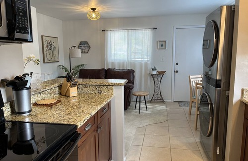 Al instalarte en este alojamiento de 1 dormitorio y 1 baño, encontrarás una zona para barbacoas y aire acondicionado. Conéctate al wifi gratis, o relájate frente a televisión. El cuarto de baño incluye un secador de pelo, un bidé y toallas. Prepara una comida casera en la cocina, equipada con horno, placa de cocina y frigorífico, además de cafetera y tetera, hervidor eléctrico y máquina de hielo. Y no tendrás que llevarte ropa de más, porque podrás aprovechar la lavadora y la secadora. Otras comodidades incluyen ropa de cama, una tabla de planchar, calefacción y una mesa de comedor.