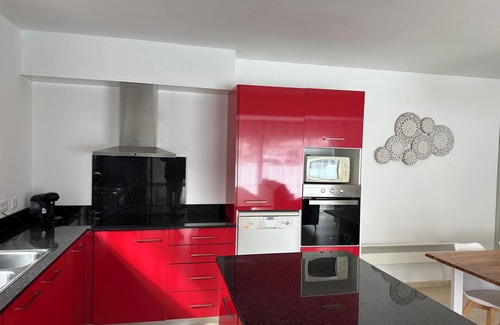 La cocina moderna y abierta está completamente equipada con horno, lavavajillas, microondas, nevera, congelador y una cafetera de cápsulas, lo que hace que la preparación de las comidas sea cómoda y fácil.