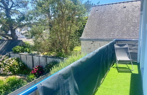Espacioso apartamento de 60 m², que ofrece una agradable vista al mar. Largo balcón desde el cual disfrutar de la vista de la bahía de Quiberon.