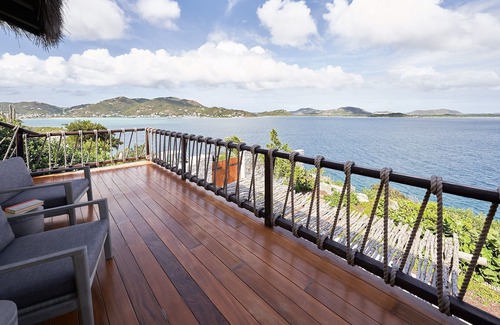 Wisdom is a spacious family-friendly suite located in the Serenity House, offering both privacy and connection. From the large private deck, take in panoramic sunrise views over the Caribbean. The main sleeping area features a king bed (or two Twin XLs), while the two lofts provide fun and cozy sleeping spaces for children. Elegant interiors and thoughtful details create a harmonious balance between comfort and island charm.