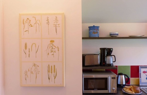 La cocina está equipada con horno, placa de cocina y frigorífico, además de cafetera y tetera, microondas y utensilios de cocina. El cuarto de baño incluye un secador de pelo y toallas. Otras comodidades incluyen ropa de cama, calefacción, servicio de limpieza limitado y una mesa de comedor.