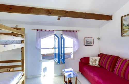 Salón-comedor con sofá cama de 2 plazas. Cocina abierta y equipada con vitrocerámica, campana extractora, microondas, horno, frigorífico superior, congelador, cafetera, hervidor, lavadora, lavavajillas. Cuarto de baño y WC separados. Arriba, un dormitorio con dos literas y un altillo con un sofá cama de 2 plazas. televisión de pantalla plana