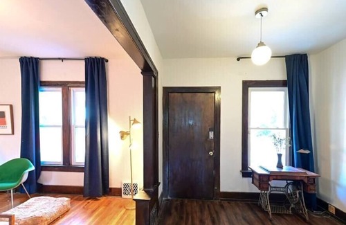El espacio recientemente renovado cuenta con muebles de mediados de siglo y acentos coloridos, lo que le otorga una sensación distintivamente habitable. Hospédese en nuestra casa de vacaciones de tres habitaciones con una cómoda sala de estar con una guitarra acústica. Cocina totalmente equipada, WIFI ilimitado y TV. ¡Ubicado en un hermoso y encantador vecindario histórico de Hubbard Richards con restaurantes de Detroit a una caminata de distancia y el centro de la ciudad, en un viaje rápido de 5 minutos!