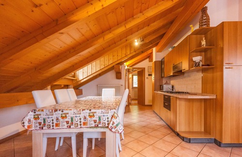 It is an attic, so the exposed wooden beams give the warmth and typical atmosphere of mountain villages, ideal for feeling at home at the end of a cold winter day spent skiing with friends or family.