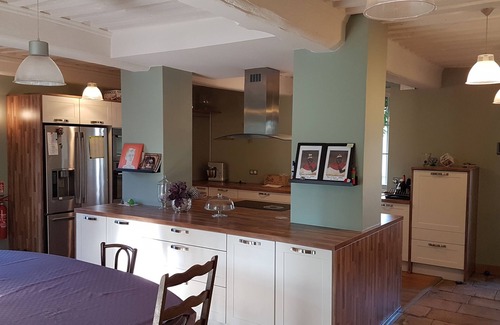 Muy grande, la casa puede albergar reuniones familiares o de amigos donde todos encontrarán la comodidad de un baño y un inodoro en su habitación. La capacidad máxima es de 16 personas (7 camas dobles y 2 camas supletorias).