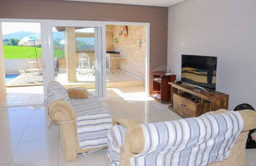 Casa terrea accesible, muy acogedora, con tres suites que contienen hidromasaje en una de las suites. Casa amueblada con cocina americana. Sala con TV 49 pulgadas (Netflix y Youtube), Wifi, Ventilador fijo en la barbacoa y otro mueble. Área Gourmet con freezer vertical. Otra sala de televisión con canal abierto. El garaje corresponde a 3 coches.