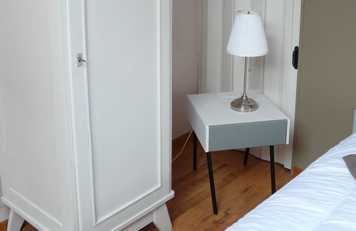 Primera planta: 1 dormitorio con vigas a la vista, con una cama doble (140) y un pequeño vestidor.