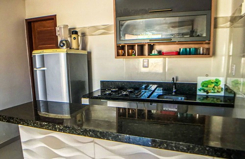 - A cozinha é equipada com todos os utensílios necessários para preparar suas refeições, incluindo geladeira, fogão, liquidificador e purificador/filtro