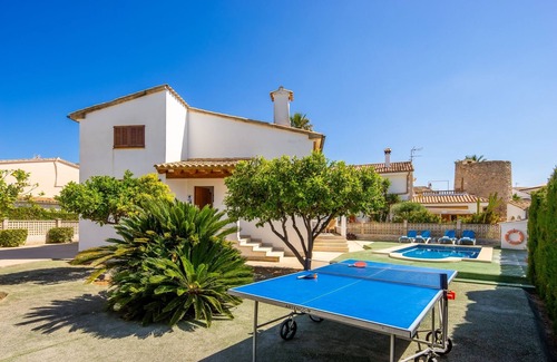 Casa con piscina a 1 km de la playa Se encuentra en Les Palmeres. Casa con piscina a 1 km de la playa ofrece alojamiento, con Aire acondicionado, TV, Piscina privada, Entre otras comodidades. Estas características Villa Aire acondicionado, TV, Piscina privada, Para que su estadía sea cómoda.