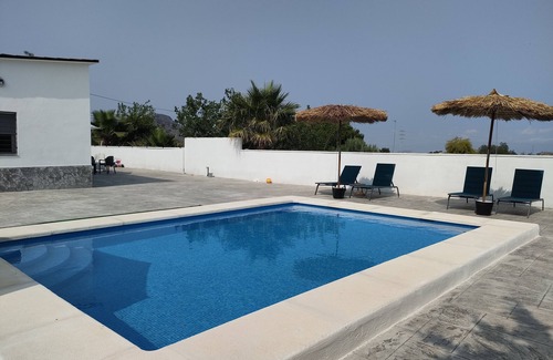 Disfruta de una casa entera en entorno rural pero con todas las comodidades, paz, relax, silencio y privacidad con piscina climatizada y cubierta exclusiva para clientes, en medio de la naturaleza ,a solo 15 km de Alicante, de aeropuerto y playas. La casa es muy amplia, dispone de 1 aparato de aire acondicionado y ventiladores en todas las estancias.