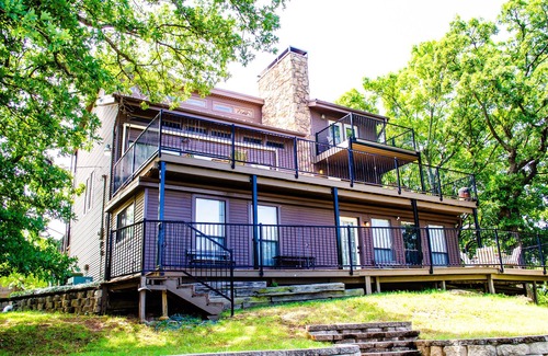 Casa completa de 3 pisos, 5 habitaciones, 3. 5 baños con tres niveles de cubierta que tienen vistas panorámicas despejadas del lago Texoma. Ideal para familias grandes o múltiples con 2 salas de estar, 2 cocinas y 5 terrazas. Disfrute de la vista de Wood Island, Hunt Island, Hog Island, la costa de Oklahoma y el hermoso bosque nativo en la propiedad que brinda privacidad a los vecinos. Televisores inteligentes y ropa de cama nueva.