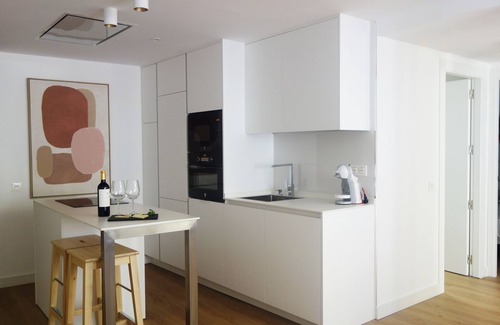 La cocina cuenta con lavavajillas, horno, microondas, tostadora, exprimidor, cafetera y lavadora.