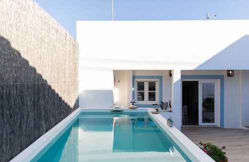 La típica casa de Alentejo, con 158m2 y dos pisos, tiene capacidad para 9 personas, cuenta con 5 habitaciones, 2 baños completos, 1 medio baño, área de comedor separada de la sala de estar, cocina súper equipada, barbacoa, una hermosa terraza en el piso superior y una piscina de 2.5mx5m