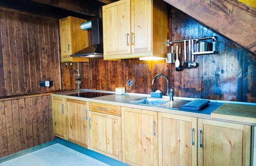Dispone de un área social con cocina totalmente equipada, salón con salamandra y baño completo con ducha. Subiendo las escaleras encontrarás dos dormitorios, cada uno con una cama de matrimonio y una cama individual en cada habitación.
