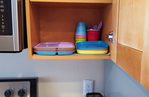 El dormitorio principal tiene una cama para dormir. Un dormitorio tiene un colchón doble de espuma y el otro dormitorio tiene una cama nido. Hay un pack and play y una silla alta en el armario del dormitorio principal. La hermosa cocina está equipada con los utensilios de cocina necesarios para preparar una comida, con ajustes de lugar para 8. También hay artículos de plástico para los niños. Café y té están disponibles para su disfrute. Diseño de plan dividido. Mucho espacio para todos con una sala de estar, sala familiar y comedor. Gran patio trasero para comer al aire libre o descansar alrededor de la piscina.