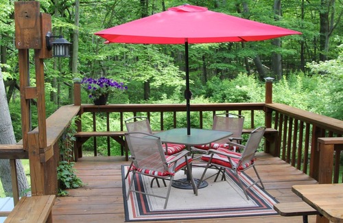 Ubicado en un lote arbolado, el 'Cottage in the Glenn' ofrece acceso privado a la hermosa playa del lago Michigan.