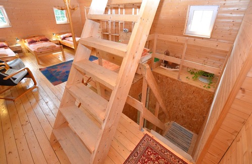 Buhardilla: (dormitorio de la galería(4x cama individual(90 x 200 cm)))