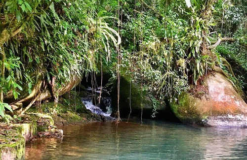 Servicios de una acogedora casa de campo Con amplios balcones, un buen lugar para descansar en un entorno privado rodeado de verde bosque atlántico con cascada y una maravillosa piscina natural, cocina con estufa industrial, diversos utensilios de cocina, exprimidor, licuadora, parrilla, etc. ... cerca de las hermosas playas de Trindade y Paraty-Mirim, a solo 15 minutos del centro de la ciudad.
