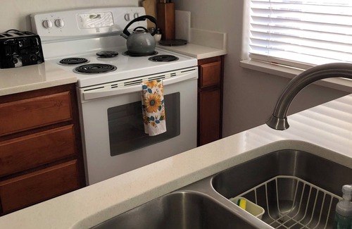 Linda casita de 1 dormitorio. Perfecto para uno o dos. Salón amueblado, aire acondicionado y calefacción en dormitorio y salón. Cable e internet proporcionados. Cuarto de baño con plato de ducha. Cocina completa con microondas, cocina eléctrica, nevera, fregadero de isla, encimeras de cuarzo, cubiertos, utensilios para cocinar y hornear. Lavandería con jabón siempre. Walk in closet. Área de cubierta cerrada al aire libre (se puede fumar afuera) Se ubica en el corazón de Jacksonville, Oregon. A poca distancia de todo lo local. Casa se adjunta a nuestra residencia. Completamente privado, estacionamiento para hasta dos vehículos. Valla de privacidad en la cubierta delantera compartida. A poca distancia de Britt, tiendas, restaurantes, caminatas, el centro de la ciudad, el centro de retiro Pioneer a solo una cuadra de distancia (visita a la familia)