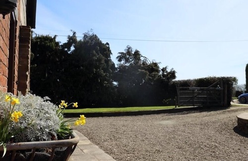 Hoy en día, este granero se ha modernizado maravillosamente y se ha convertido en un lugar impecablemente limpio y encantador con las vigas y vigas restantes. Elephant Cottage es luminoso y espacioso en su interior debido a los techos con vigas altas, y múltiples ventanas dan a la vista de las tierras de cultivo circundantes.