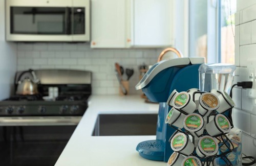 Casa de huéspedes independiente de nueva construcción con privacidad óptima y entrada privada. Patio privado bien cuidado. Techos altos de dos pisos, puertas francesas y ventanas de gran tamaño diseñadas para permitir que la luz y la brisa del Pacífico de SoCal entren. Cada piso tiene una habitación King con puertas francesas que conducen al patio o balcón, un baño prístino con sistema de altavoces y una sala de estar con sofá cama y Smart TV. La cocina totalmente equipada, w / lavavajillas y Keurig se encuentra en el nivel principal.