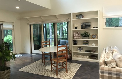 Un espacioso estudio de una habitación, a pasos de la playa de Oregon. Ubicado al final de Main Street, con acceso a todo lo que Cotuit tiene para ofrecer; La casa está situada en una propiedad tranquila y arbolada. La habitación es limpia y luminosa, con todas las comodidades que lo harán sentir relajado y contento después de un día explorando el Cabo. Está equipado con una cocina nueva y lavadora / secadora. Cuenta con una cama queen y un cómodo sofá desplegable.