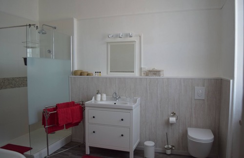 Nuestra casa cuenta con 5 habitaciones muy espaciosas con baño privado, 4 habitaciones se encuentran en el 1er piso, 2 con vistas al jardín y la piscina. Otro dormitorio se encuentra en el 2do piso.