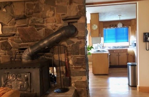 The house includes 4 bedrooms, 2 with queen size beds, 1 with a full/double size bed, and the large bedroom in the basement has a nice cozy sitting area with 2 twin size beds. There are 2 full bathrooms, one with a Washer and dryer. A Large living room, well equipped kitchen and dining room full of natural lighting and beautiful views. There is a spacious deck with bbq and patio table!