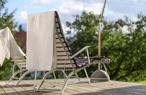 Dejando la casa de campo a través de la puerta trasera del hotel hay una terraza grande, al sur aislada / hacia el oeste, que ofrece suficiente espacio para una zona de estar y de sol fuera de tumbonas. Al norte de la vista pasa a la casa de Davos y hasta la iglesia del pueblo.